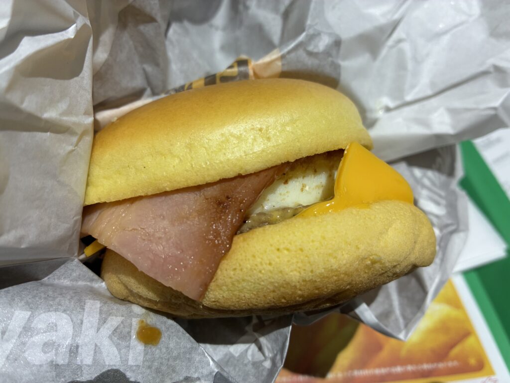 バンズがとてもふわふわで美味しく、すき焼きだれと卵の相性が抜群でした。すき焼きといえば、薄切り牛肉を甘辛いタレで焼き、生卵に付けて食べる日本ならではの料理です。照焼バーガーは以前からありますが、すき焼きバーガーは新しく、食べながらとてもワクワクしました。
